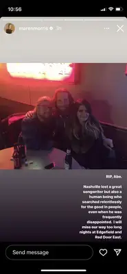 Morris publicou uma foto em suas redes sociais com o compositor tardio com uma mensagem sincera. Nashville perdeu um grande compositor, mas também uma pessoa que procurou incansavelmente o poço de pessoas, mesmo que tenha escrito com frequência. Sentirei falta das nossas noites por muito tempo em Edgefield e Red Door OST.
